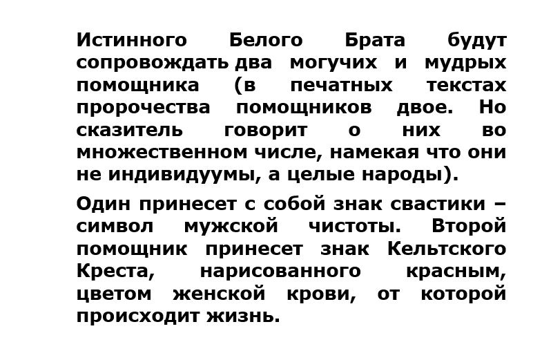 (приход данного лидера к политической власти будет очень быстрым, то есть в один временной период)Истинного Белого Брата будут сопровождать помощники
